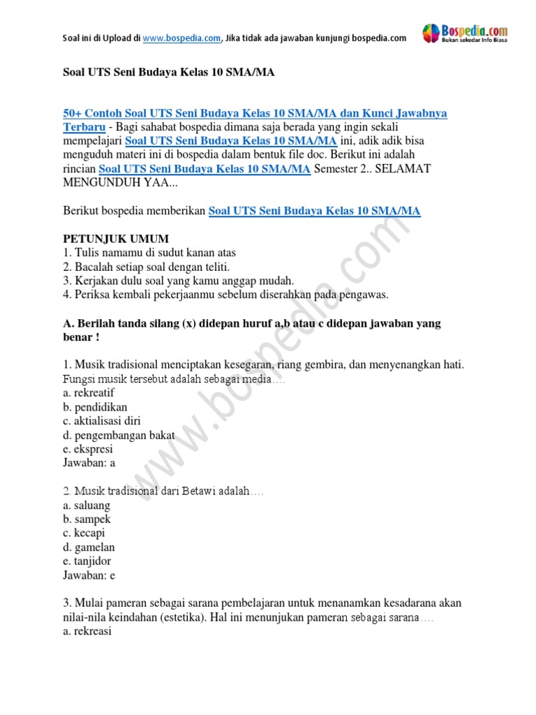Pemimpin paduan suara biasanya disebut… a. Contoh soal seni budaya kelas 10 sma/ ma semeter 1 dan semester 2 lengkap dengan kunci jawabannya tempatkan tanda silang (x) di depan huruf a, b atau c sebelum jawaban yang benar! Budaya adalah keseluruhan sikap dan pola perilaku serta pengetahuan yang merupakan suatu kebiasaan yang diwariskan dan dimiliki oleh suatu anggota masyarakat tertentu. Buku seni budaya kelas 10 kurikulum 2013.