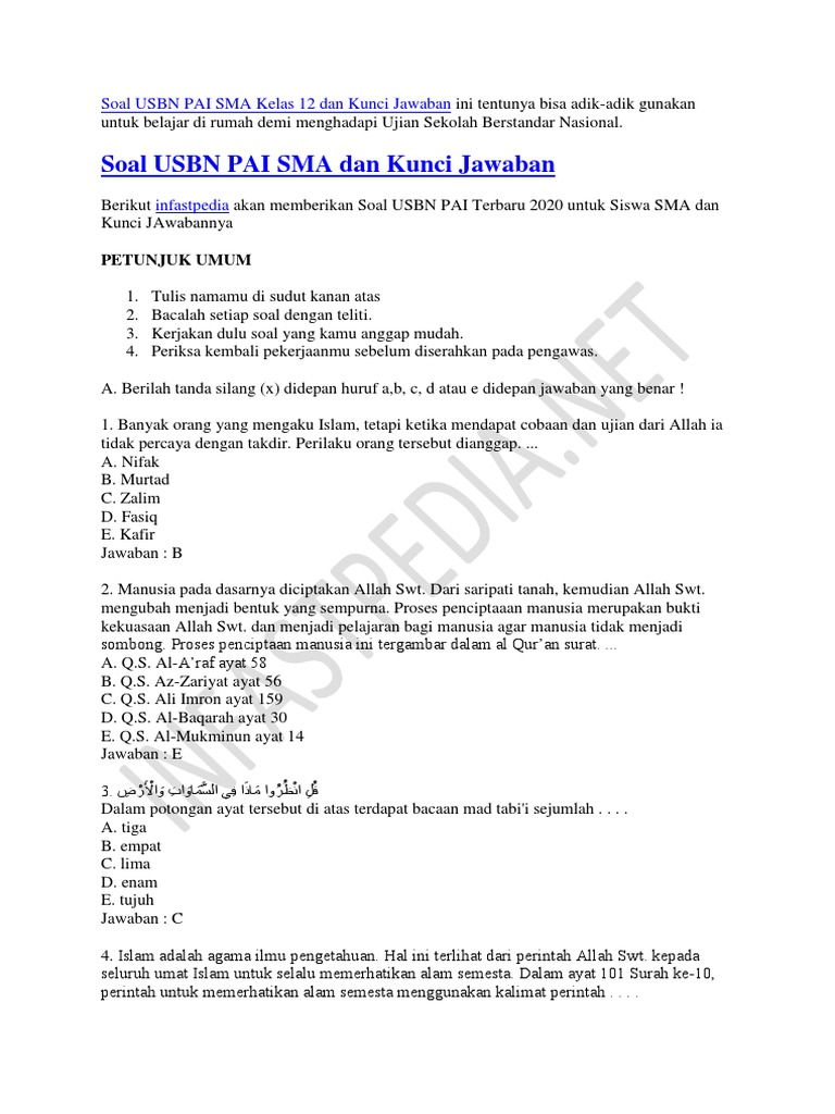 19+ Soal Ujian Sekolah Agama Islam Sma Dan Kunci Jawaban. Oiya dalam uu ri no.20 thn. Download soal dan kunci jawaban agama islam pai usbn 2018 pdf hari demi hari telah berlalu semakin dekat dengan pelakasanaan ujian sekolah berstandar nasional atau biasa disebut usbn 2019.