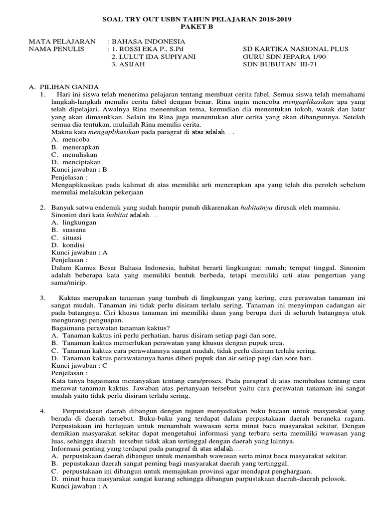 Kunci jawaban soal try out ujian nasional kelas 6 sd. Kunci jawaban buku paket tematik siswa kelas 6 tema 3 tokoh dan penemuan subtema 1 penemu yang mengubah dunia pembelajaran 2 halaman 10 buku siswa yang digunakan sebagai sumber belajar di kelas 6 merupakan buku tematik terpadu kurikulum 2013 (k13) revisi 2018. Berikut ini adalah rincian soal try out uasbn bahasa indonesia kelas 6 sd/mi semester 2.