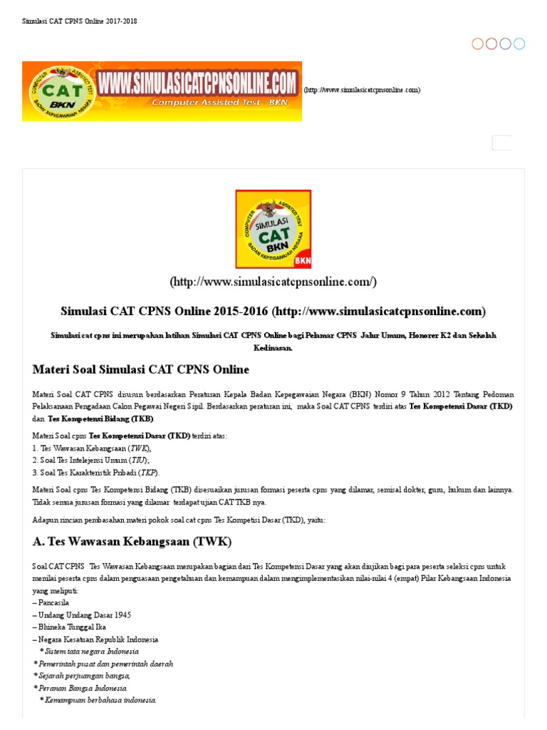 Klik link di bawah ini untuk mengikuti simulasi tes cat bkn online gratis.