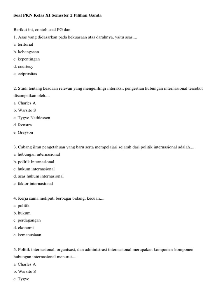 Kumpulan soal untuk persiapan ulangan pkn kelas 11 semester 2. Soal pilihan ganda dan jawaban pkn kelas xii semester 1. Soal uts pts pkn kelas 11 semester 2 kurikulum 2013 dan kunci jawaban soal pkn kelas 11 sma/smk semester 2 ini hanya sebagai bahan latihan semata agar mudah.