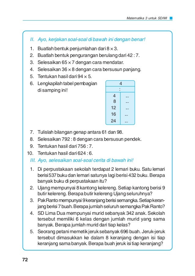 Soal ini dapat kalian pergunakan sebagai bahan latihan menghadapi penilaian harian karena dilengkapi dengan kunci jawaban. Matematika kelas 3 suharyanto c jacob 2009. Cerdas berhitung matematika untuk sd/mi kelas 3 nur fajariyah, defi triratnawati pusat perbukuan departemen kata kunci. Semoga dengan adanya kunci jawaban ini dapat.