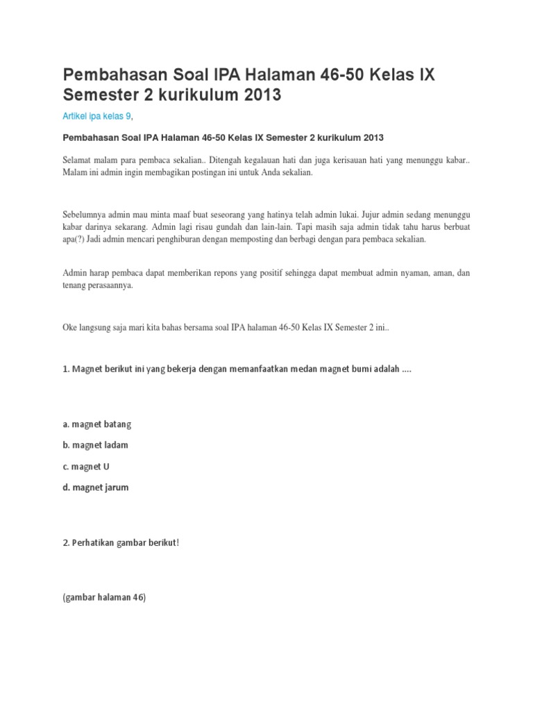 39+ Kunci Jawaban Ipa Kelas 8 Semester 2 Halaman 46. Tetaplah bersama dengan kami di majalahpendidikan.com. Terjawab • terverifikasi oleh ahli.